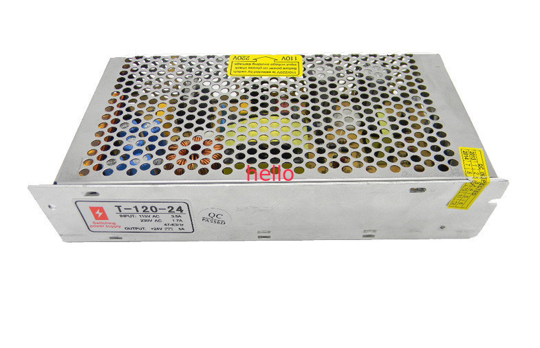 المعادن فتش تحويل امدادات الطاقة 120W، مساهمة الجهد 100-240V، 47 ~ 63Hz، 24V انتاج التيار الكهربائي، 5 أمبير الحالية، بما يتفق مع CE، شهادة بنفايات، لجنة الاتصالات الفدرالية. تستخدم عادة لشاشة عرض LED / LCD والمعدات الطبية والأمن وحماية الصناعة الخ