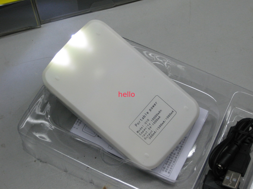 Avec l'interface multiple de commutateur, compatible pour la plupart de téléphones et de périphériques mobiles de marque, le capactiy est 10000mAh avec 2 LED pour allumer la fonction.