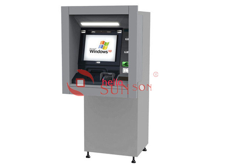 Máquina financeira do ATM do quiosque da operação bancária do serviço do auto da montagem da parede através da parede